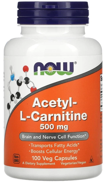Амінокислота ацетил- L-карнітин, 500 мг, 100 вегетаріанських капсул, бере участь у процесі спалювання жиру, NOW Foods.