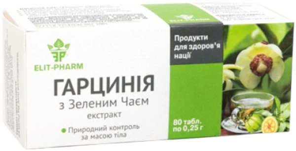 Жироспалювач Еліт-Фарм Гарцинія з зеленим чаєм №80 таблеток (4820060422064)