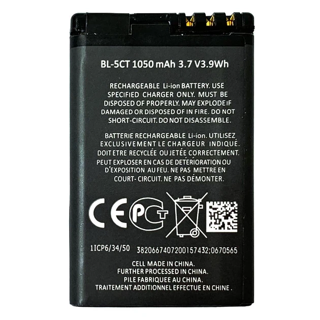 Аккумулятор Nokia BL-5CT 3720 5220c 6303 6730 C5-00 Наши аккумуляторы – это надежный источник питания для вашего мобильного телефона. С высокой емкостью и современной технологией, они обеспечивают длительное время автономной работы вашего устройства. Быстрая зарядка и встроенная система защиты от перезарядки и короткого замыкания делают их оптимальным выбором для продления времени использования вашего гаджета. Выберите надежность и производительность для вашего устройства с нашими аккумуляторами!