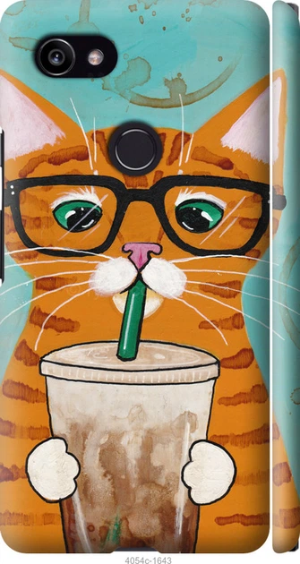 Чохол 3d пластиковий матовий на телефон Google PixeL 2 XL Зеленоокий кіт в окулярах "4054m-1643-58250"