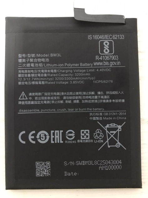 Акумулятор Xiaomi Mi 9 / BM3L (M1902F1G, M1902F1A, M1902F1T, M1902F1C) (3300 mAh) 12 міс. гарантії