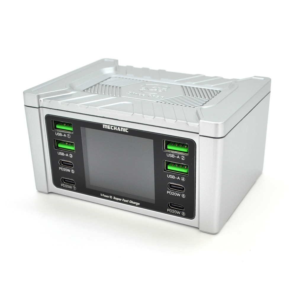 Зарядна станція з цифровою індикацією MECHANIC V-Power 8 Max, 4*QC3.0-5В3А,9В2A, 4*PD3.1-(5В/9В/12В/15В)3А,20В2,25A, 220V/11