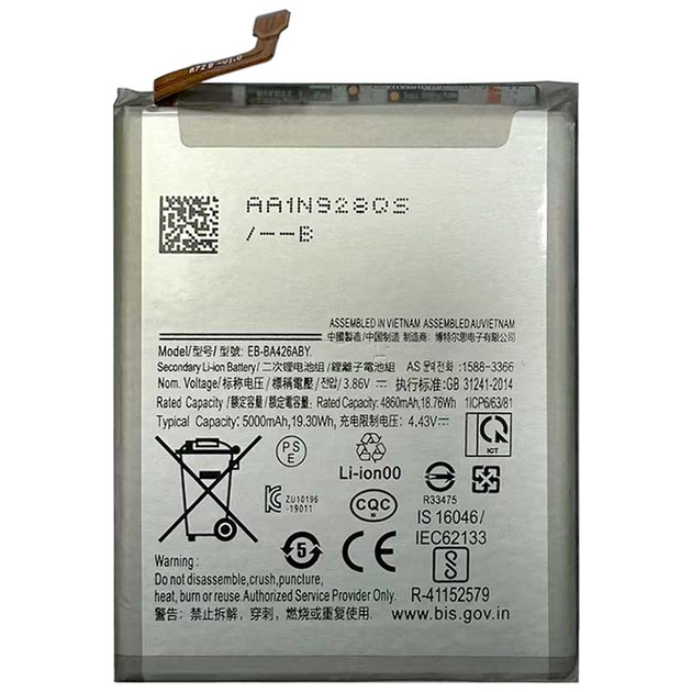 Акумуляторна батарея DEJI Samsung EB-BA426ABY, ємністю 5000 mAh підходить для Samsung Galaxy A32 SM-A326J / SM-A326B/DS / SM-A326U / SM-A326A / SM-A326U1Galaxy A32 SM-A326T / SM-A326P / SM-A326WGalaxy A42 SM-A426 / SM-A426BGalaxy A72 SM-A725F/DS / SM-A726F/DSGalaxy Jump 5G (2021) SM-A326K (дивитися всі Сумісні моделі). Основні переваги акумуляторів DEJI: Сертифікати якості: CE, FCC, C-Tick RoHs "Свіжа" дата виробництва: 03.2023 (продрукована на кожній батареї) Використання літієво-полімерних батарей, що