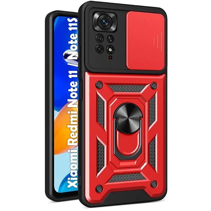 Задня кришка: матова; Кільце-тримач; Матеріал: силікон з пластиком; Сумісність: Redmi Note 11, Redmi Note 11s; Тип: захисний чохол