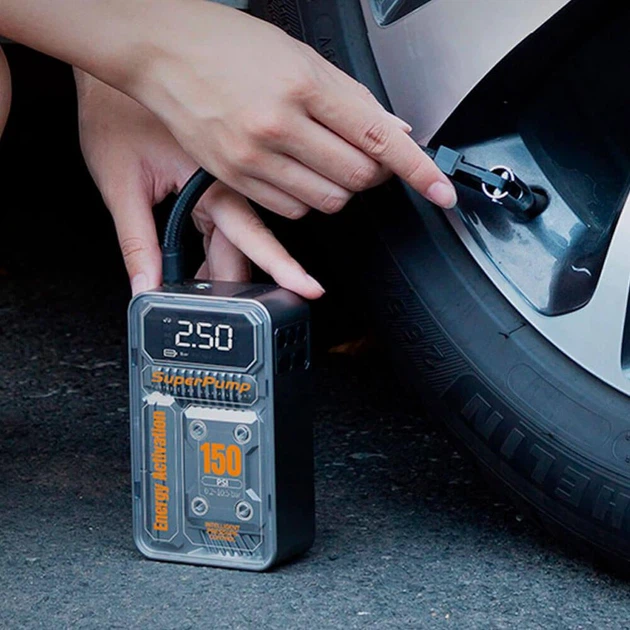 Портативний компресор ATJ-9566 з цифровим манометром і акумулятором 6000 мА·год
