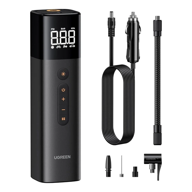 Автокомпресор Ugreen ET501 150 PSI 10.3 Бар 35 л/хв 12V цифровий дисплей автостоп LED Чорний (35573)
