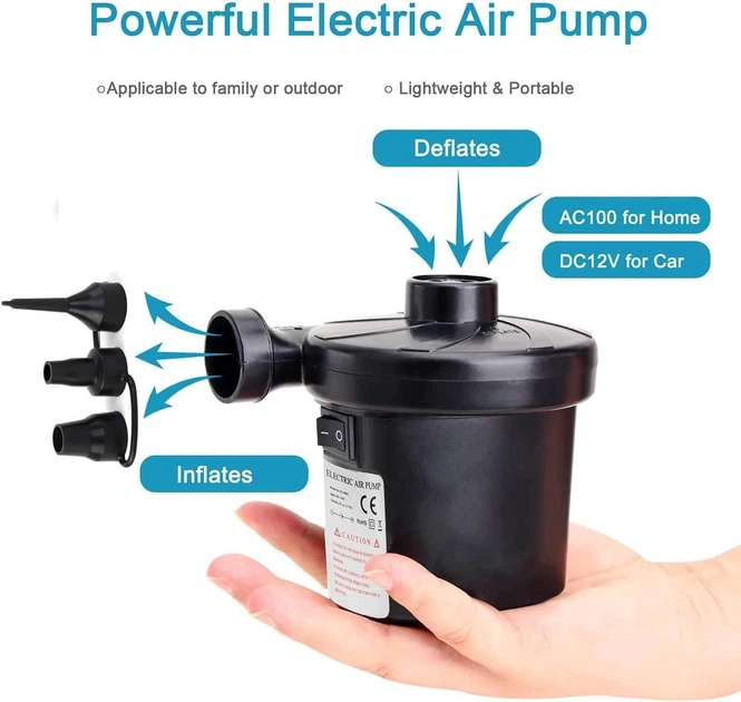 Електричний насос Owyee 2-в-1 з 3 насадками, для матраців, човнів, басейнів, мережевий