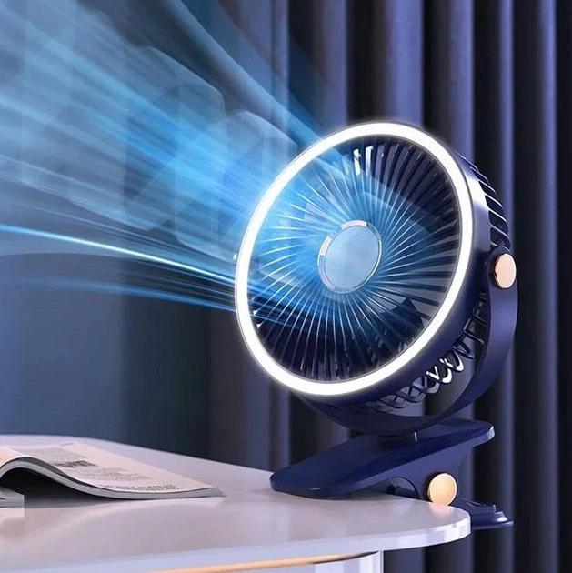 Настільний вентилятор VHG F03 з LED-підсвіткою, акумулятор 10000 мА·год, 5 швидкостей, обертання на 720°, USB