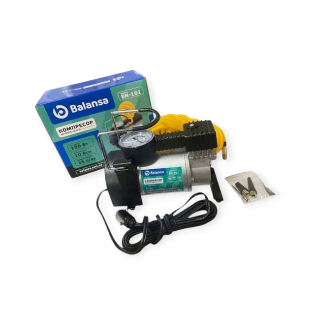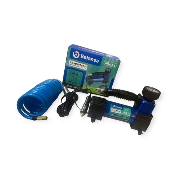 Компресор Balansa 10атм, 35л, 12А, 3м шланг спірал, прикур, насадки, сумка