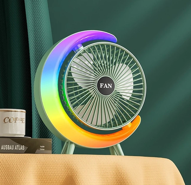 Настільний вентилятор з RGB-підсвіткою, 3 швидкості, 180° поворот, USB-зарядка