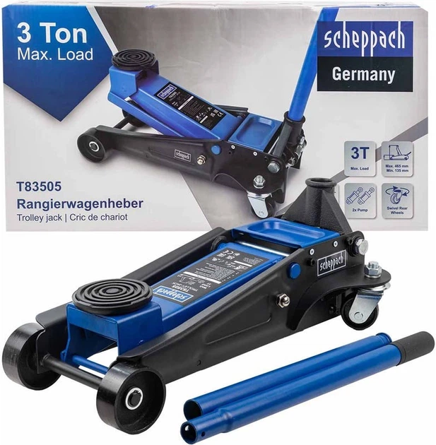 Домкрат підкатний Scheppach гідравлічний 135-465 мм 3 т (СТ-00180433)
