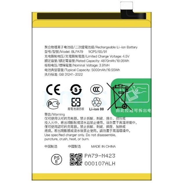 Акумулятор BLPA79 для Oppo F27, Reno12 F, Reno12 F 4G, 5000mAh, оригінал (PRC)