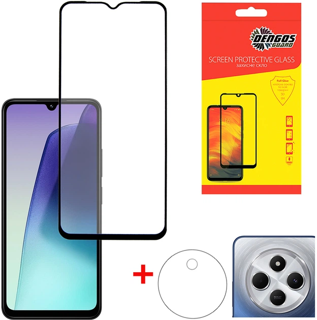 Комплект захисне скло для екрана + захисне скло камери DENGOS Full Glue для Xiaomi Redmi 14C Black (DG-TGSCP-07)