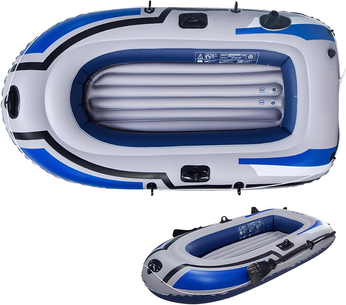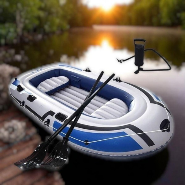 Надувний човен ПВХ із насосом і веслами 3 місця легкий човен для риболовлі сімейного відпочинку подорожей та моря