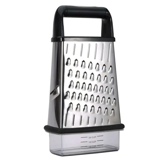 Незамінний помічник на будь-якій кухні Терка для пармезану з серії TEFAL COMFORT незамінний помічник на будь-якій кухні, який допоможе вам в лічені секунди впоратися з подрібненням пармезану. Модель має ергономічну не що ковзає ручку виготовлену з харчового пластика в чорному кольорі. Ріжуча поверхня виготовлена з міцної нержавіючої сталі, яка не піддається корозії, механічних пошкоджень.