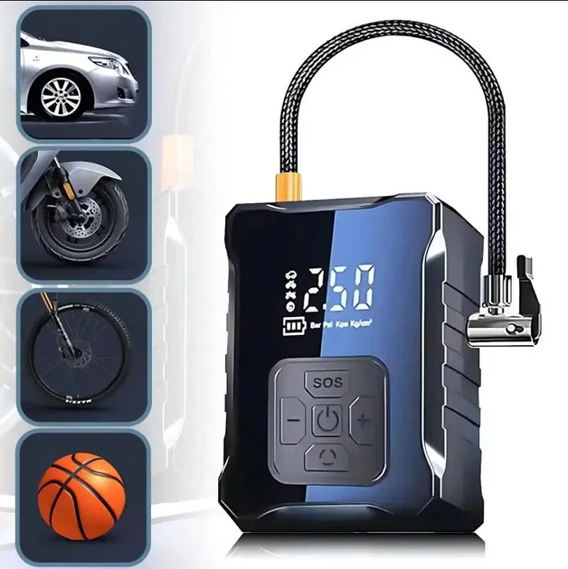 Портативний автомобільний компресор ATJ-201 з акумулятором і дисплеєм тиску