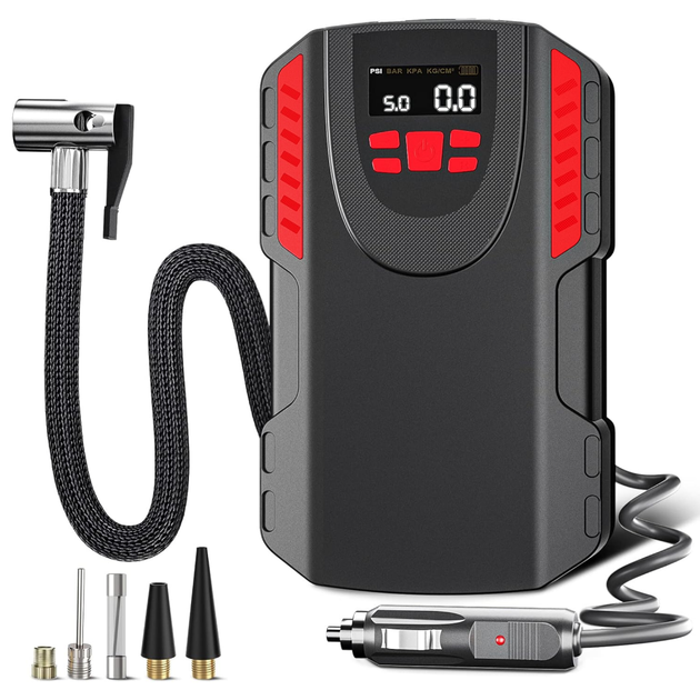 Портативний професійний електричний компресор для автомобілів із ліхтарем12 вольтів цифровий дисплей