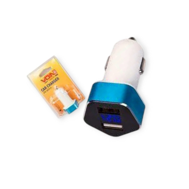 Зарядний пристрій від прикур. Voin 2USB 2.4А овальний білий, Євро