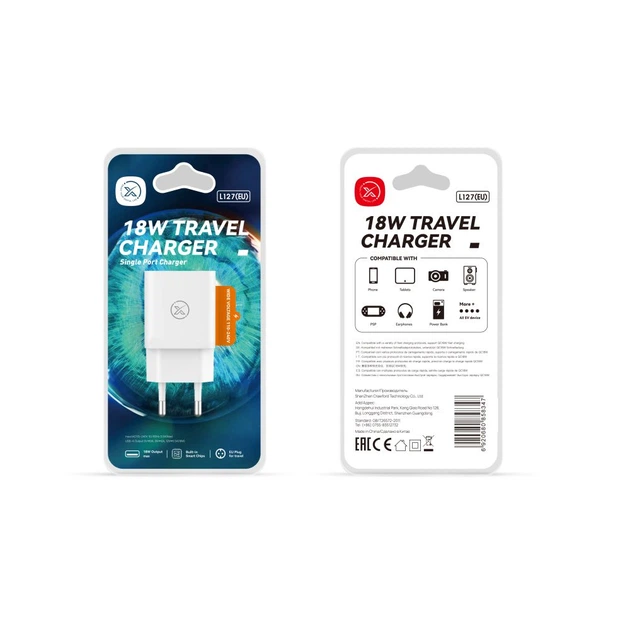 Зарядний мережвий пристрій xo 18W з підтримкою qc без кабелю білий