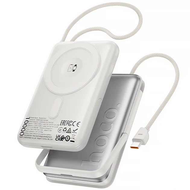 Павербанк зі швидкою 20W та безпровідною зарядкою MagSafe і вбудованим кабелем Type-C 10000mAh HOCO Q44 Сірий