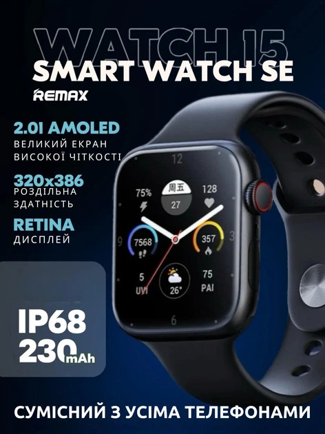Смарт-годинник Remax WATCH 15 Letar Series SE Black з підтримкою дзвінків