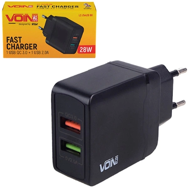 Мережевий зарядний пристрій Voin 28W, 2 USB, QC3.0 (LC-24428 BK)