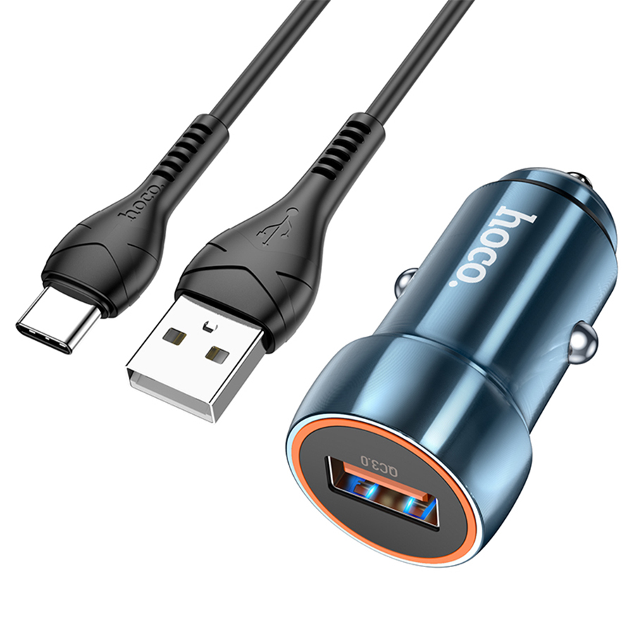 Набір АЗУ 12-24V HOCO Z46+ кабель Type-C, 1xUSB, 18W, кабель 1м, Blue, Box HOCO Z46 / TCBe