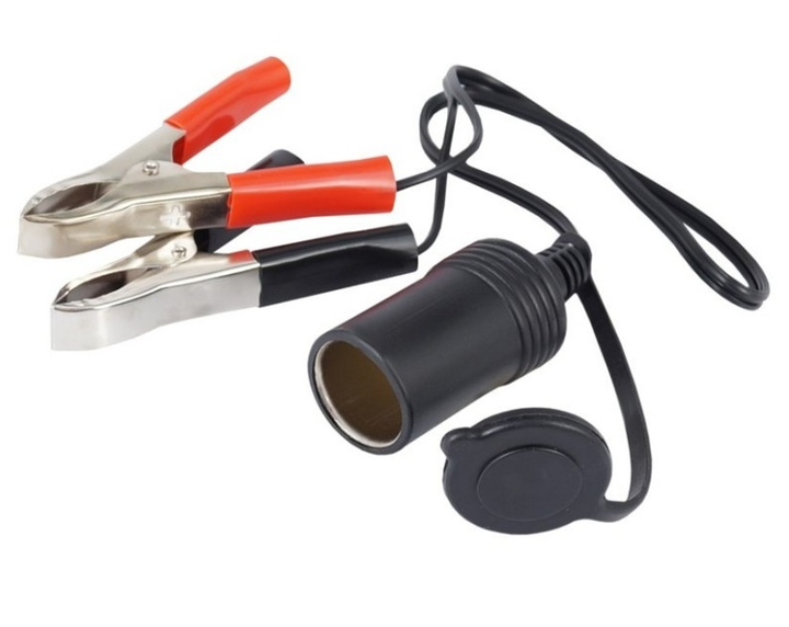 Перехідник-гніздо прикурювача із затискачами/крокодилами АКБ з кришкою 12/24V