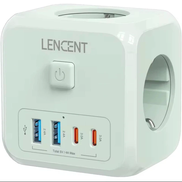Зарядний пристрій Lencent 7в1 4000W Max; 3xUSB|1xType-C|3x розетки Green