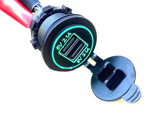 Гніздо під 2 USB DC 12-24V/5V 2,1-1A, підсвічування з різьбою SF-50-2 RED