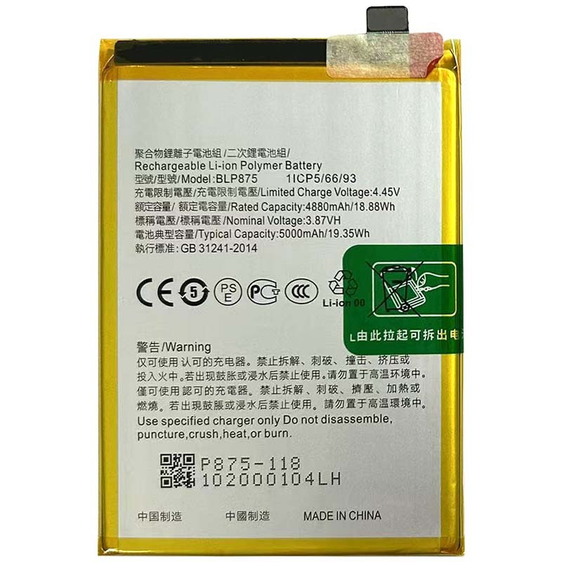 Аккумулятор оригинал Realme BLP875 Realme C55 - это высококачественная запчасть для вашего смартфона. Этот аккумулятор обеспечивает долгую работу устройства без подзарядки, быстрое восстановление заряда и стабильную работу всех функций смартфона. Основные характеристики Аккумулятор Realme BLP875 Realme C55 обладает емкостью 5000 мАч, что обеспечивает длительное время работы смартфона. Благодаря