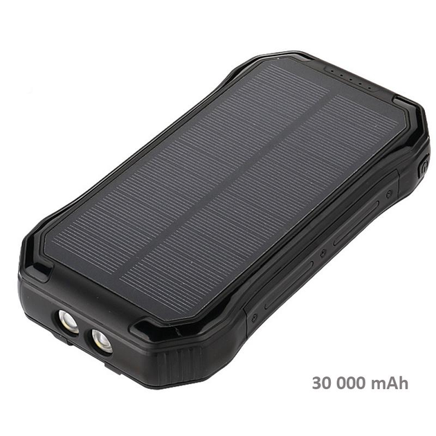Універсальний повербанк Solar із сонячною панеллю 30000 мА·год подвійний USB яскравий вбудований ліхтар