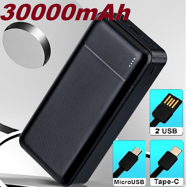 Павербанк Power Bank 30 000mAh 2xUSB\Type-C\Micro-USB УМБ повербанк портативна зарядка