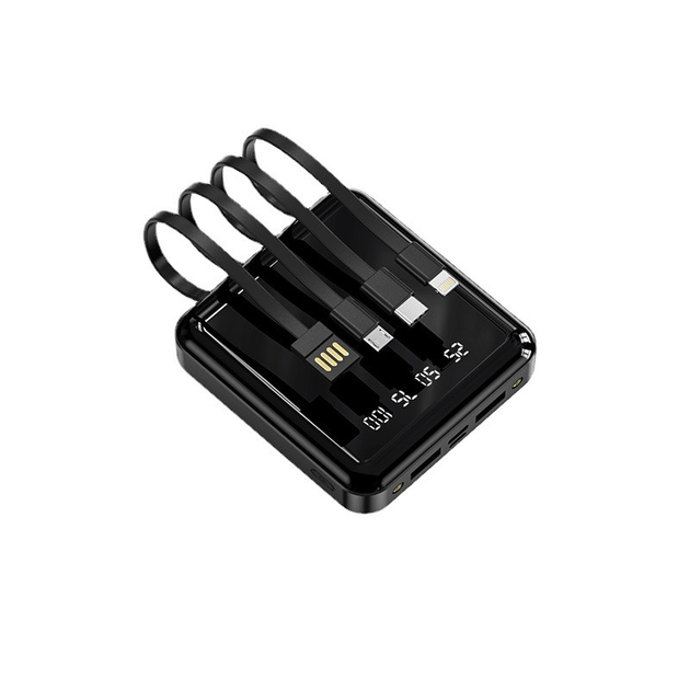 УМБ Павербанк 20000 mAh з LCD дисплеєм + LED ліхтар Power Bank HY-C40 зі швидкою зарядкою чорний + Вбудований кабель-адаптер