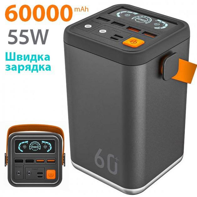 УМБ Павербанк 60000 mAh Швидка Зарядка PD + QC 55W, Ліхтарик - для Телефона Роутера Планшета Ноутбука Годинника Навушників П
