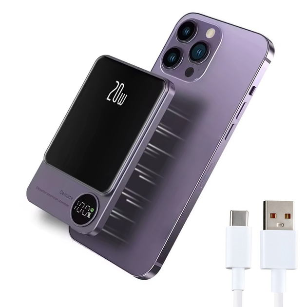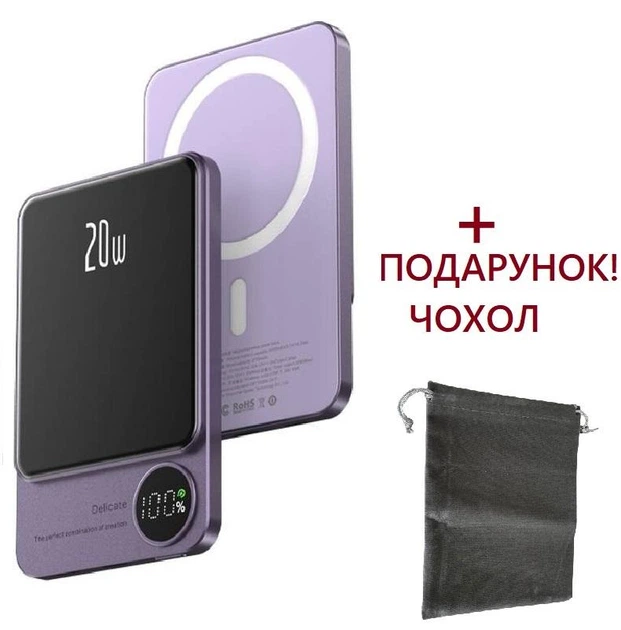 УМБ бездротове зарядне MagSafe Power Bank Battery Pack 10000mAh 20W фіолетовий+чохол