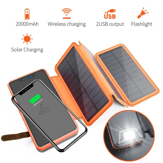 УМБ с солнечной панелью DN39 20000 mAh Portable Solar Charger Wireless 5 panel Orange
