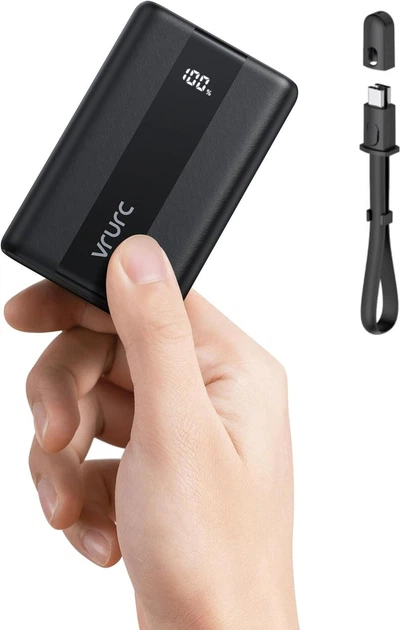 PowerBank VRURC T2047Q 20000 mAh з 4 вбудованими кабелями — USB-C, Micro USB, Lightning, USB-A Чорний, Чорний, Новий. Пошкод