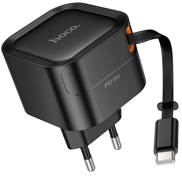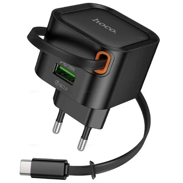 МЗП Hoco C154A Changer PD20W+QC3.0 charger with telescopic cable(EU) Black