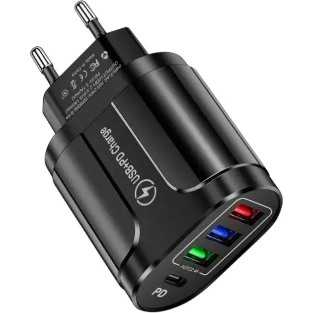 Зарядний пристрій Mirrow 3 USB Type-C Super Charge/Quick Charge 3.0 5V/2.4A Black (355621451)