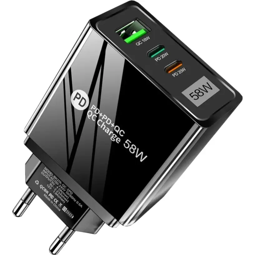 Зарядний пристрій Mirrow USB 2-Type-C Super Charge/Quick Charge 3.0 PD 58W Black (КУ050840)