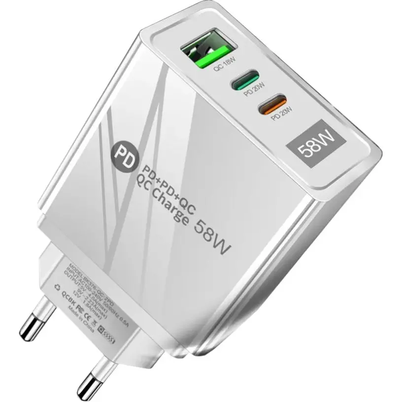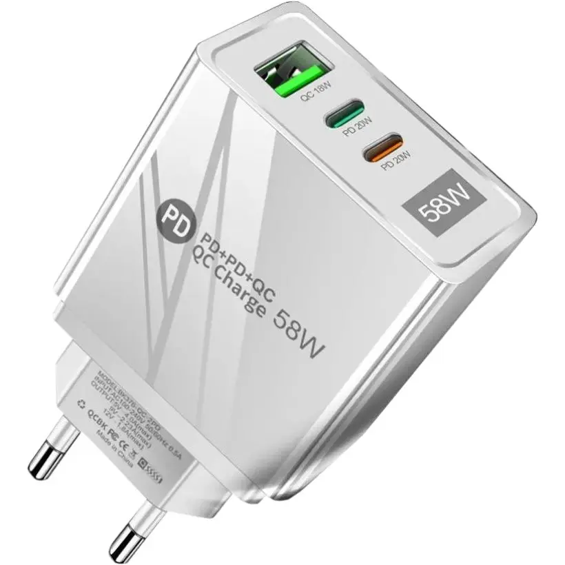 Зарядний пристрій Mirrow USB 2-Type-C Super Charge/Quick Charge 3.0 PD 58W White (FR050841)