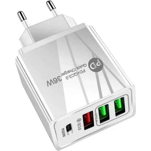 Зарядний пристрій Mirrow 3 USB Type-C Super Charge/Quick Charge 36W White (985741235)
