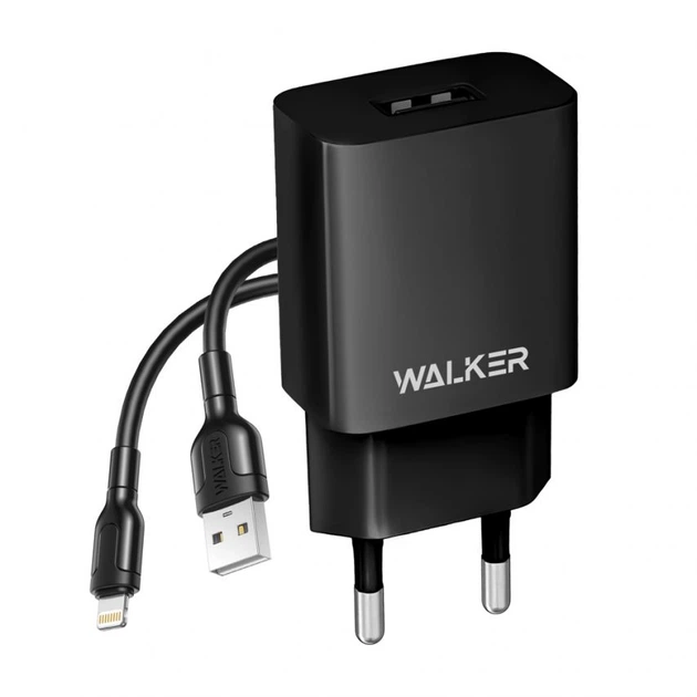Мережевий зарядний пристрій (адаптер) WALKER WH-26 1USB / 2.1A + Lightning black