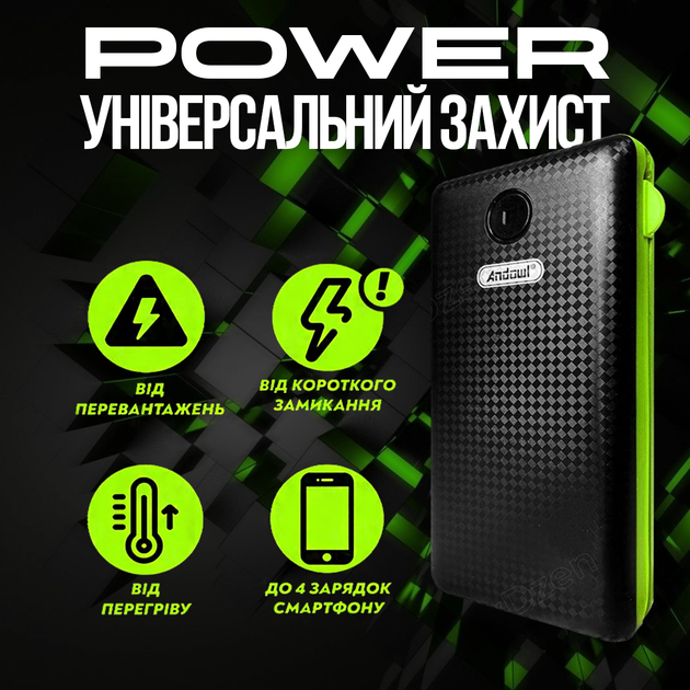 УМБ Andowl Q-T70Х1 Power Bank 20000 mAh Зовнішній акумулятор (повер банк, портативна батарея) Чорний/Зелений