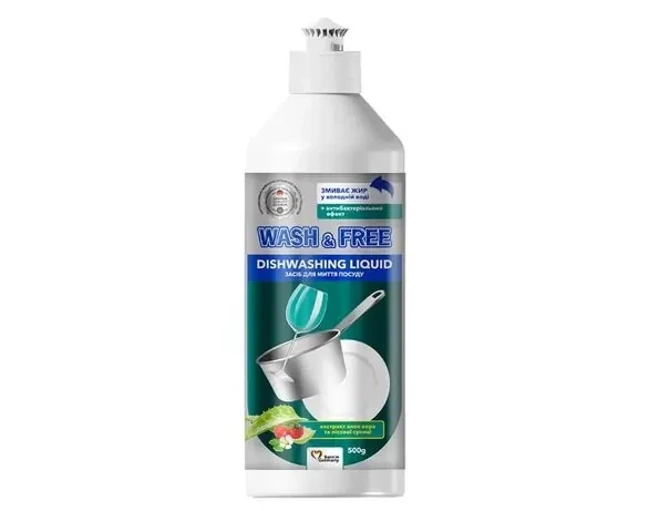Засіб для ручного миття посуду Wash&Free зелене яблуко та екстракт едельвейса 500 г (4260637724267)