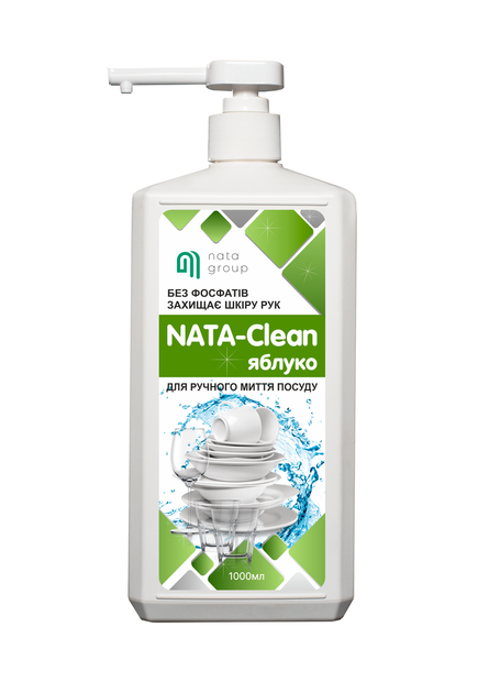 Засіб миючий Nata group NATA-Clean для ручного миття посуду з ароматом яблука з дозуючим носиком 1л