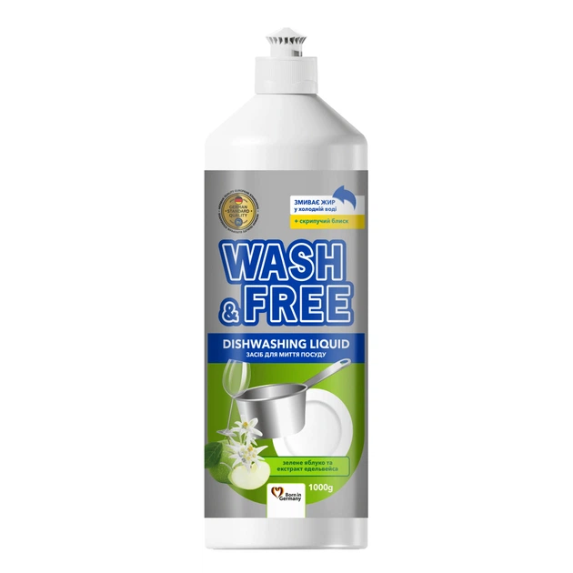 Засіб для ручного миття посуду Wash&Free Зелене яблуко та екстракт едельвейса 1000 г (4823128001379)