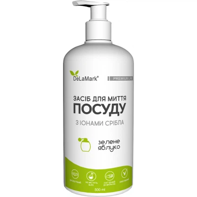 Засіб для ручного миття посуду DeLaMark з іонами срібла Зелене яблуко 500 мл (4820152331021)