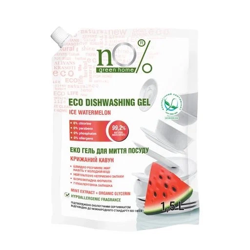 Еко-гель для миття посуду nO green home Крижаний кавун, 1.5 л Duo-Pack
